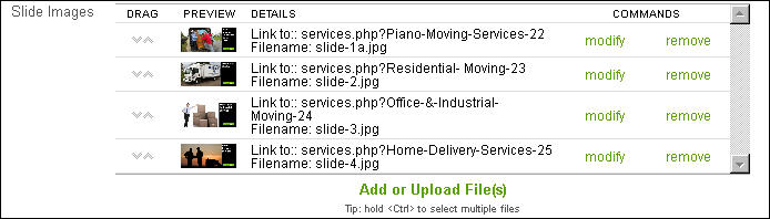 Thanks Ron the slideshow was exactly what I was looking for. However I am not sure how to make it work with the CMS picture uploader. Any suggestions? Thanks again.