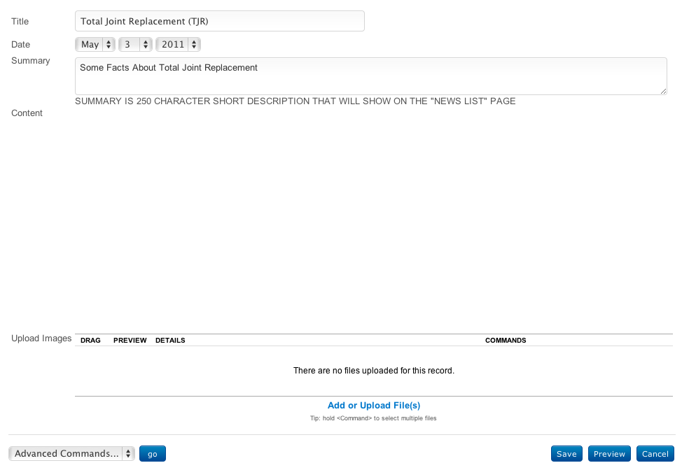 Hello! I'm having an issue with our content field. It's showing online for the website, but not in the admin. Below are two screenshots. One of the editor (showing that the content field is supposed to be there) and the admin page where it does not show up.