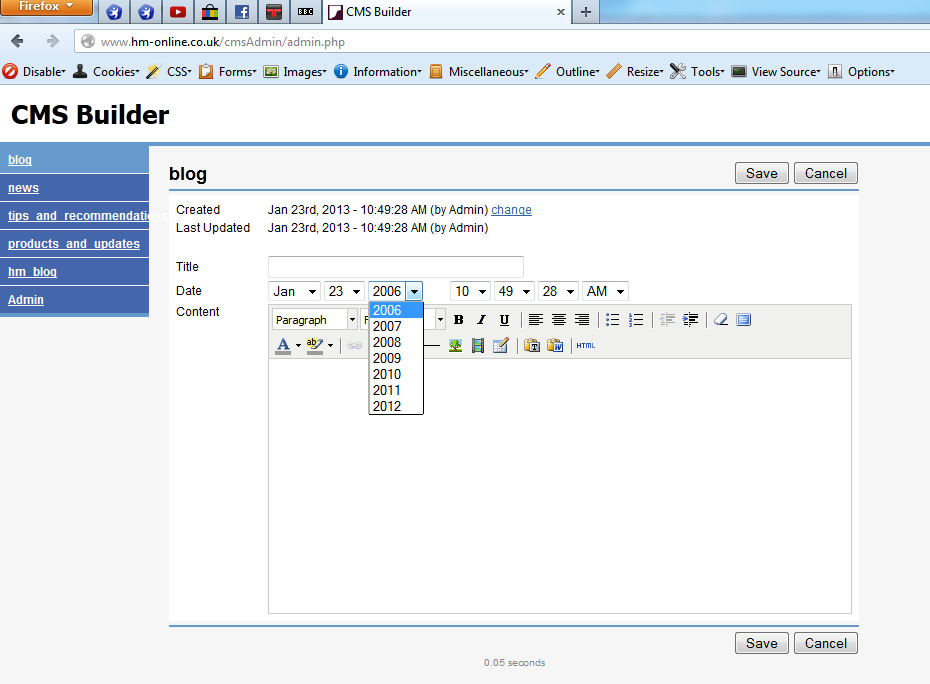 CMS Builder 1.23 - Incorrect Date range since New Year