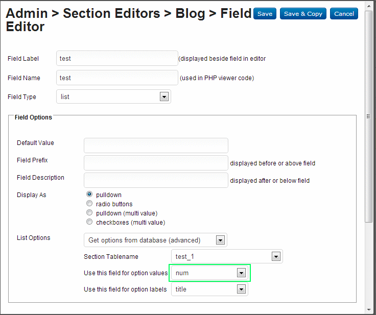 In CMSB, I've changed the corresponding list field to num, as you suggested. The code I'm using to retrieve the relevant table is as follows: