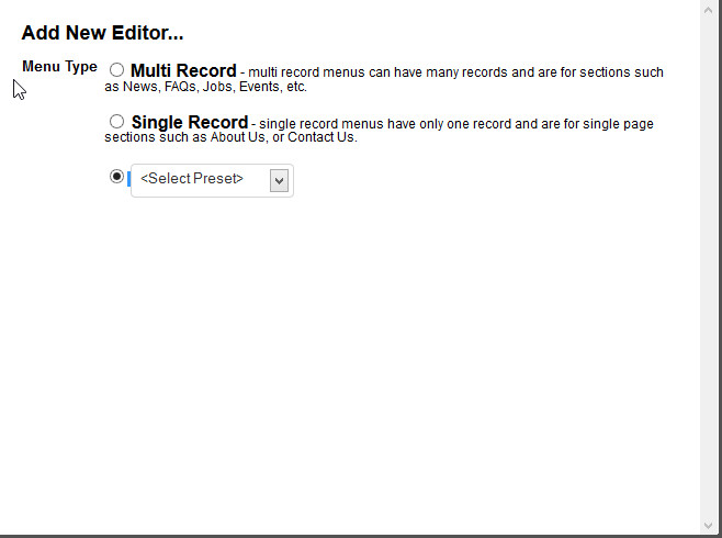 When I attempt to create a new editor the dialog box is almost blank. (**Screen shot attached)