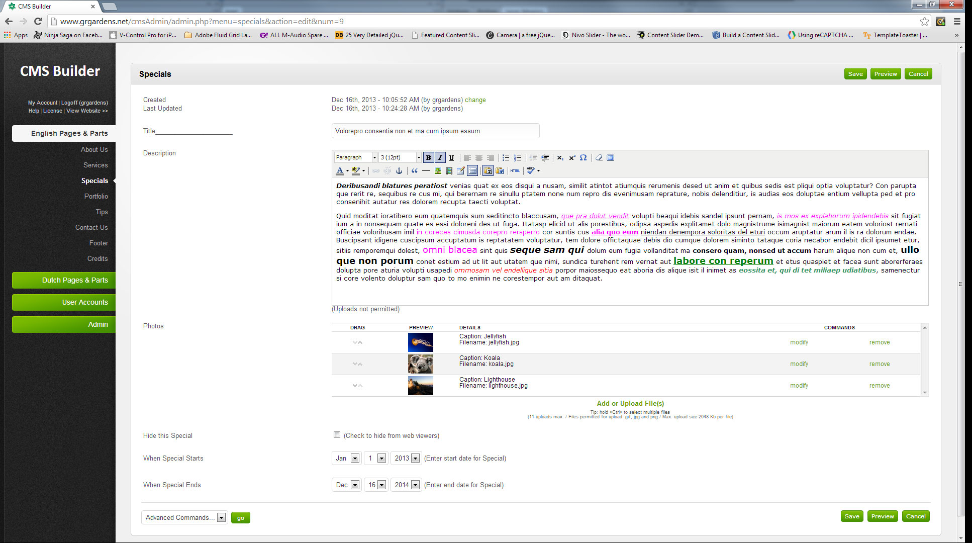 I would have liked the client to be able to put bold, underlined, italic text where he would like.
