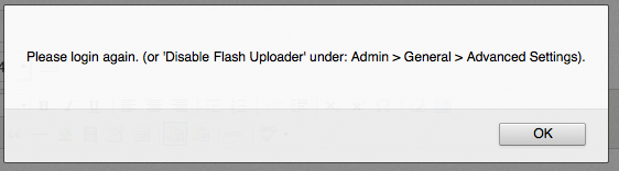 i have found a bug in the current version it looks like Flash uploader isnt working, attached is the error message you get on each upload now.