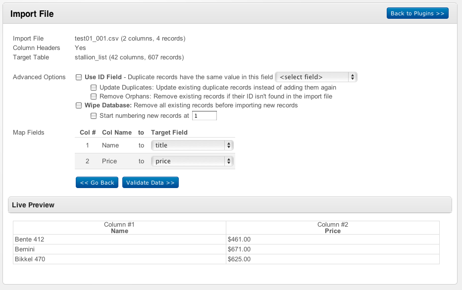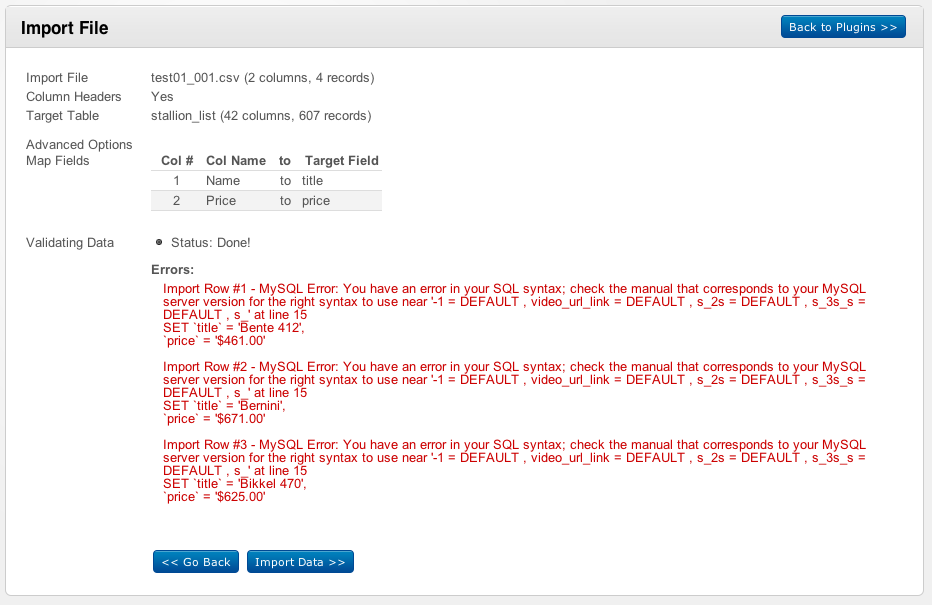 Each Stallion has it's own original Title (name). The client will be updating "price" on a regular basis so that's why we got csvimport.