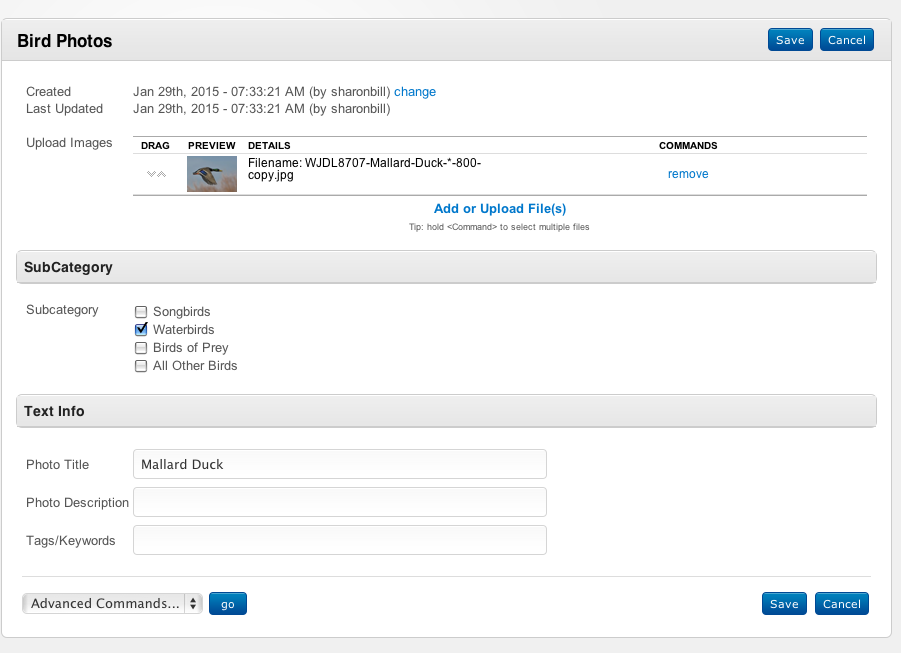Yes, there is a table called bird_photos and ALL birds were already entered into it when the client decided they wanted them easily divided into subcategories (Songbirds, Waterbirds, Birds of Prey, All Other Birds)