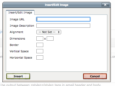 In CMSB wysiwyg, on the other hand, if I try and add an image, I see dialogbox2 (attached).  It allows you to browse and upload an image for insertion.