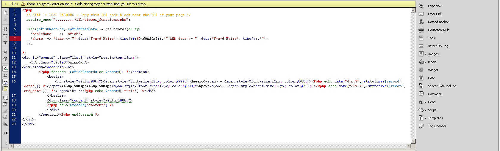 list($afishRecords, $afishMetaData) = getRecords(array(