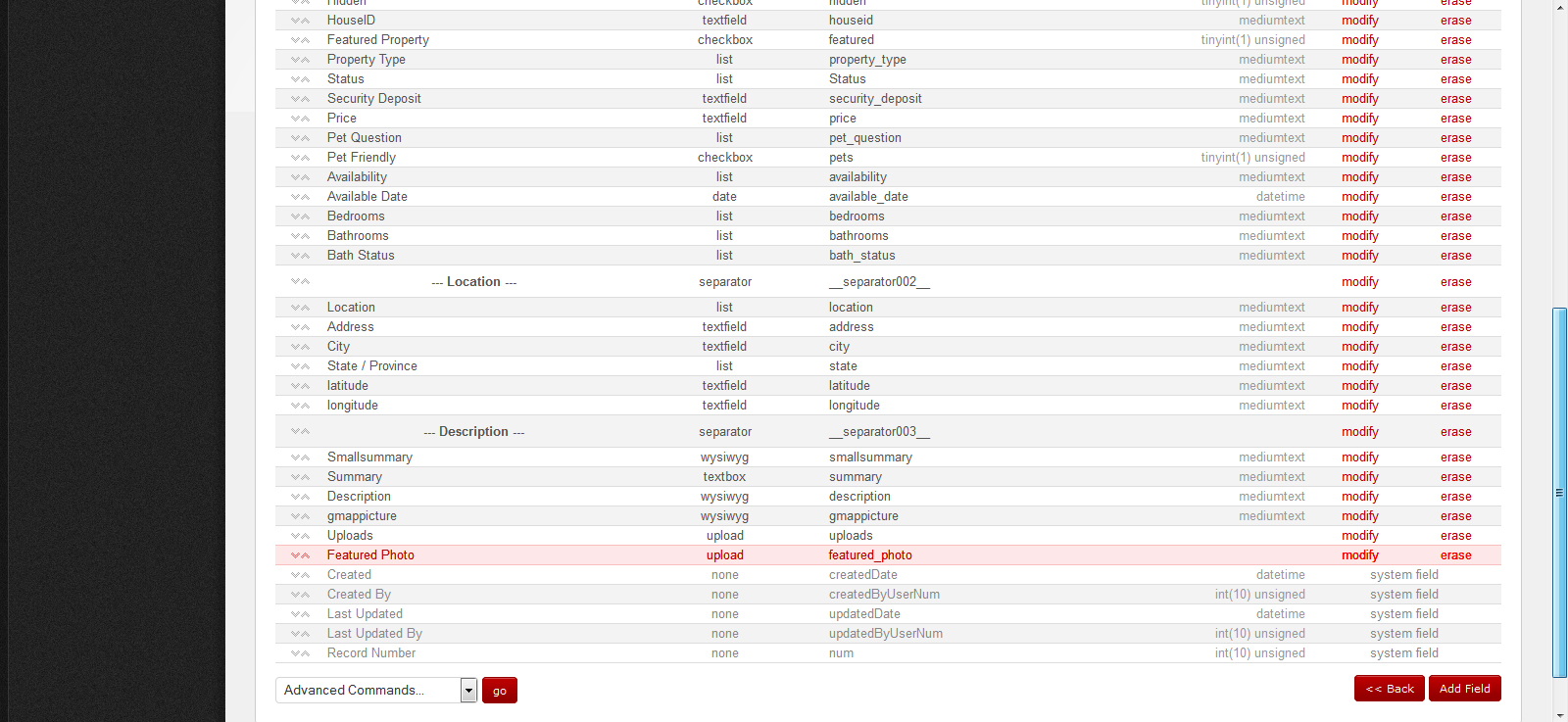 Then when you go to listings and click modify for a house, you scroll down to the end where you can upload a photo for the Featured Photo for that specific house.