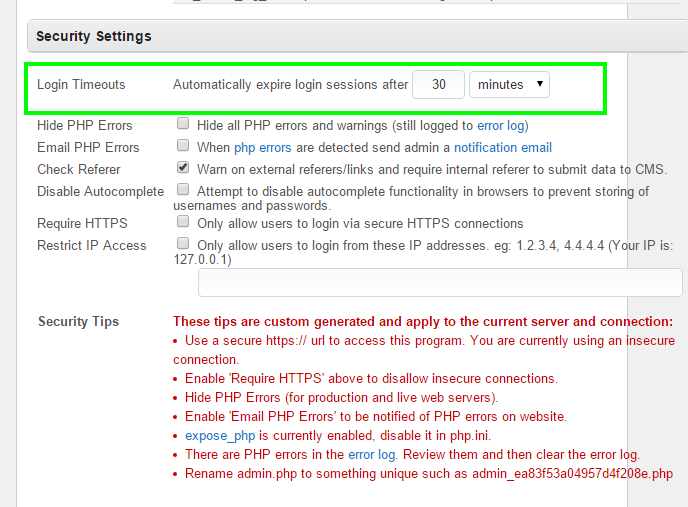 PS: if there is no way to make this option separated and if i keep the CMS management very strict (required logoff) may can increase the value to hours so i can live with it.