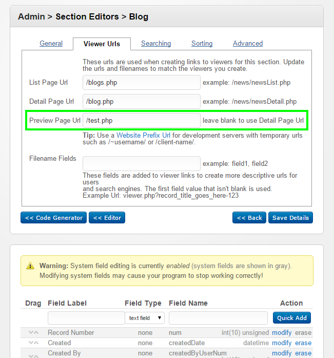 - Edit the section and under the viewer URL's tab, enter the path to your preview page (See attached screenshot).