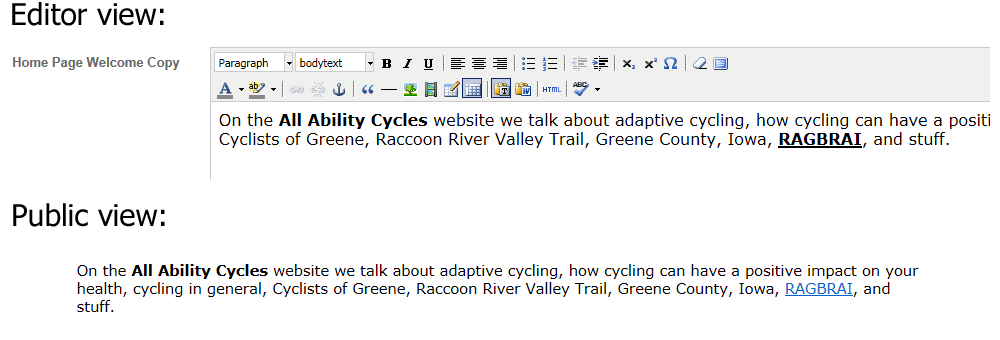 Is the  bodylink class in a stylesheet that is attached to the site frontend as well?