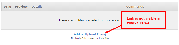 Missing upload link when using the latest version of Firefox (49.0.2)