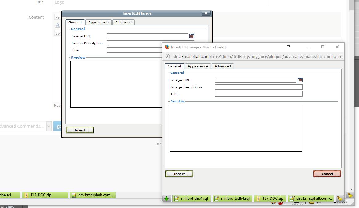 Problems using Insert/Edit image in Firefox CMSB 3.09
