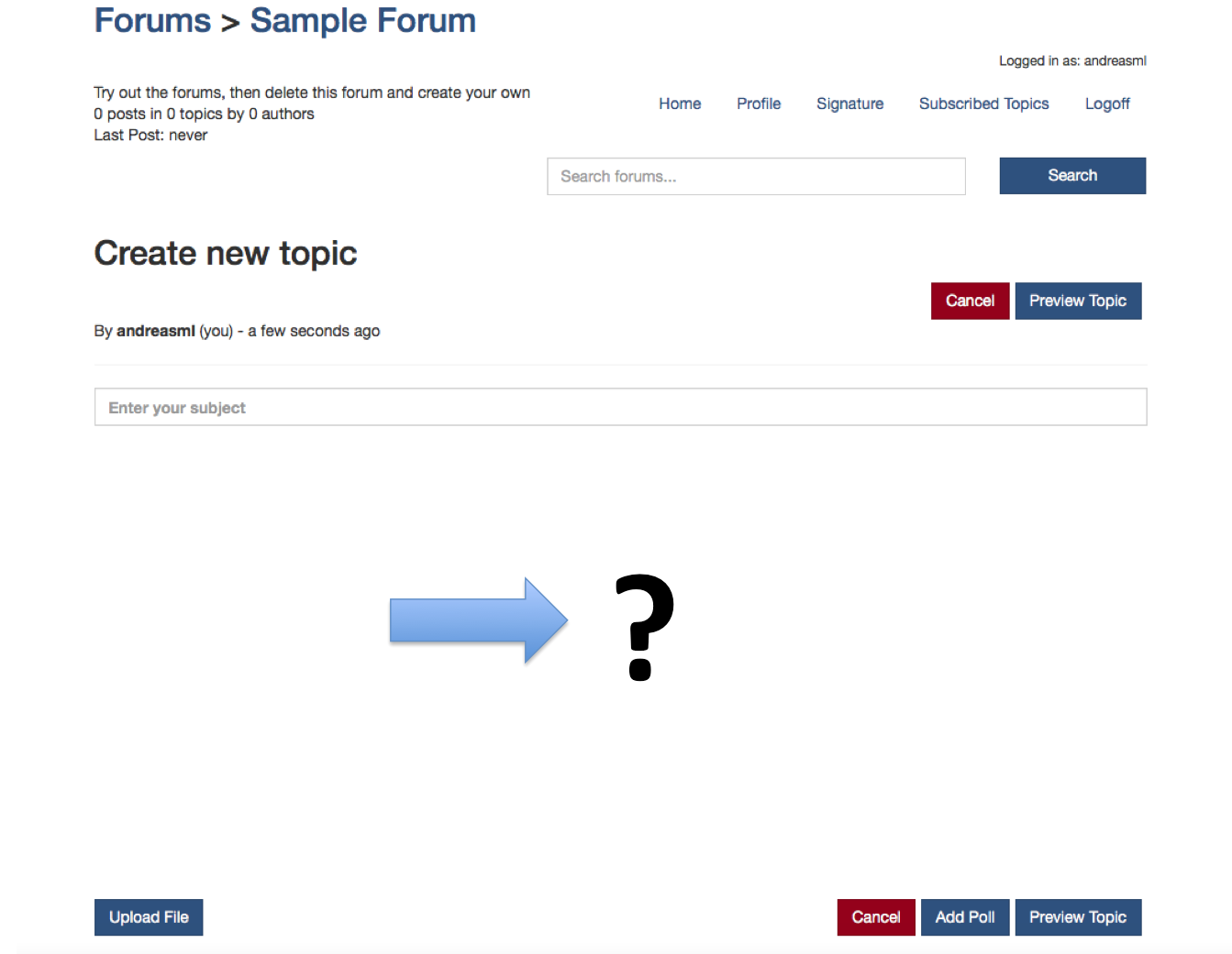 When I am asking to create a new topic the WisWyg box, under the subject textbook, is missing (upload file 1).