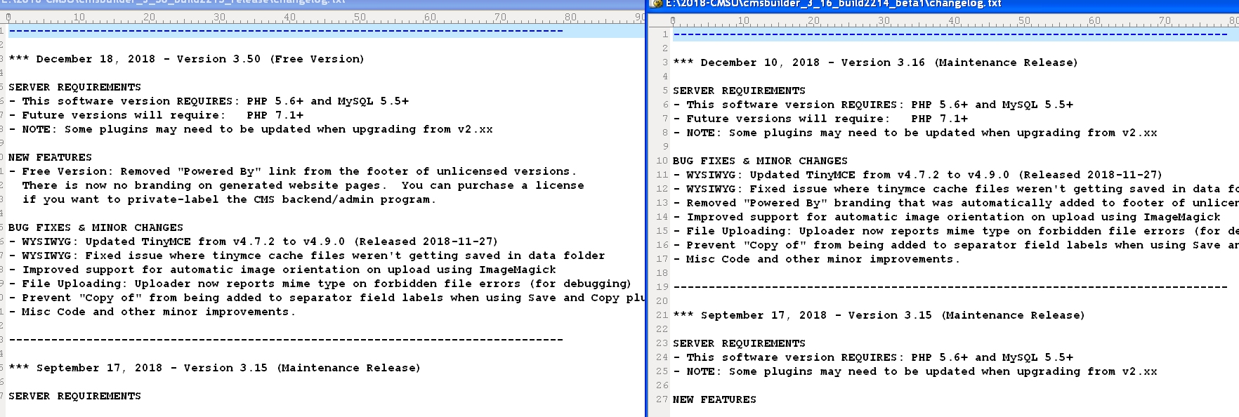 Difference between CMSB v3.16 (Build 2214) and CMSB 3.50 (Build 2215)?