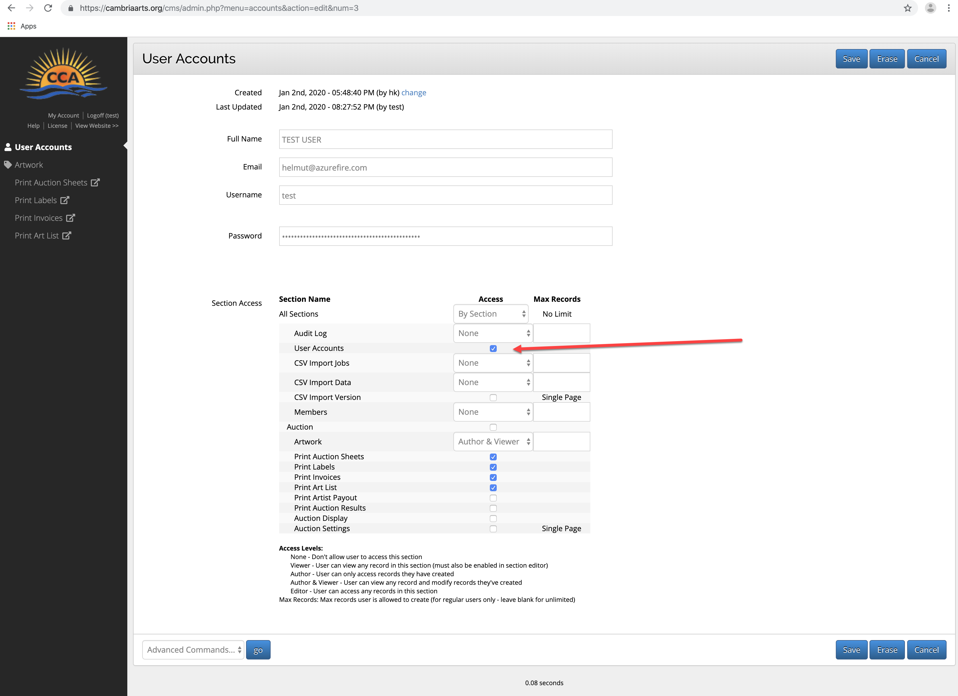 This persons should not be able to change the access to the sections for themself or other users. Only an admin should be allowed to make changes.