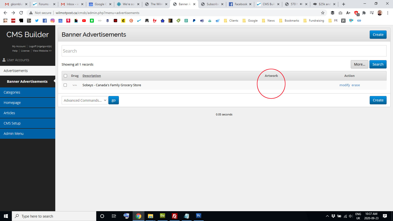 Click on modify for the Banner Advertisement editor