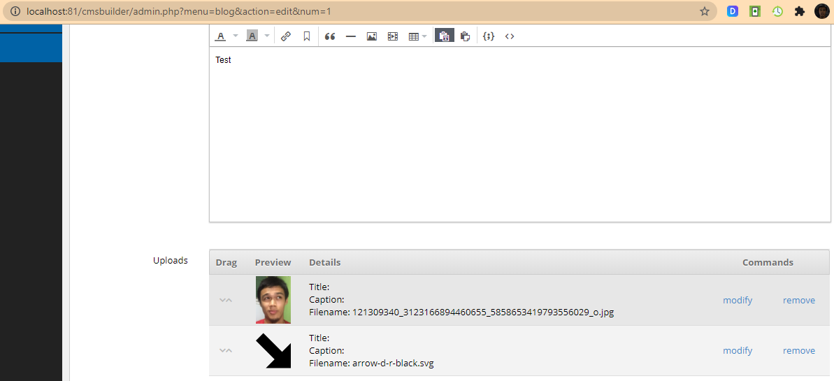 Hello... I would like you to go to your CMSB directory and find lib/upload_functions.php, then go to the showUploadPreview() method.