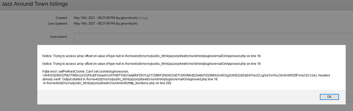 There is no error thrown when the emailOnApproved plugin is deactivated.
