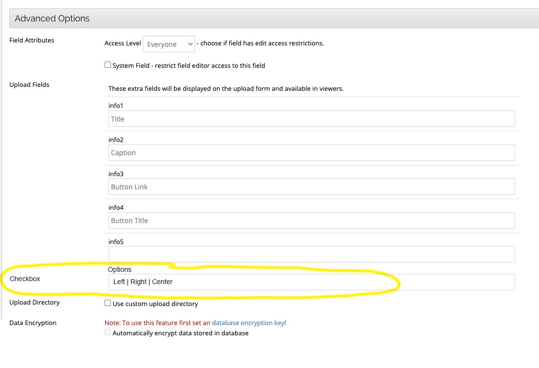 Upload field - checkboxes