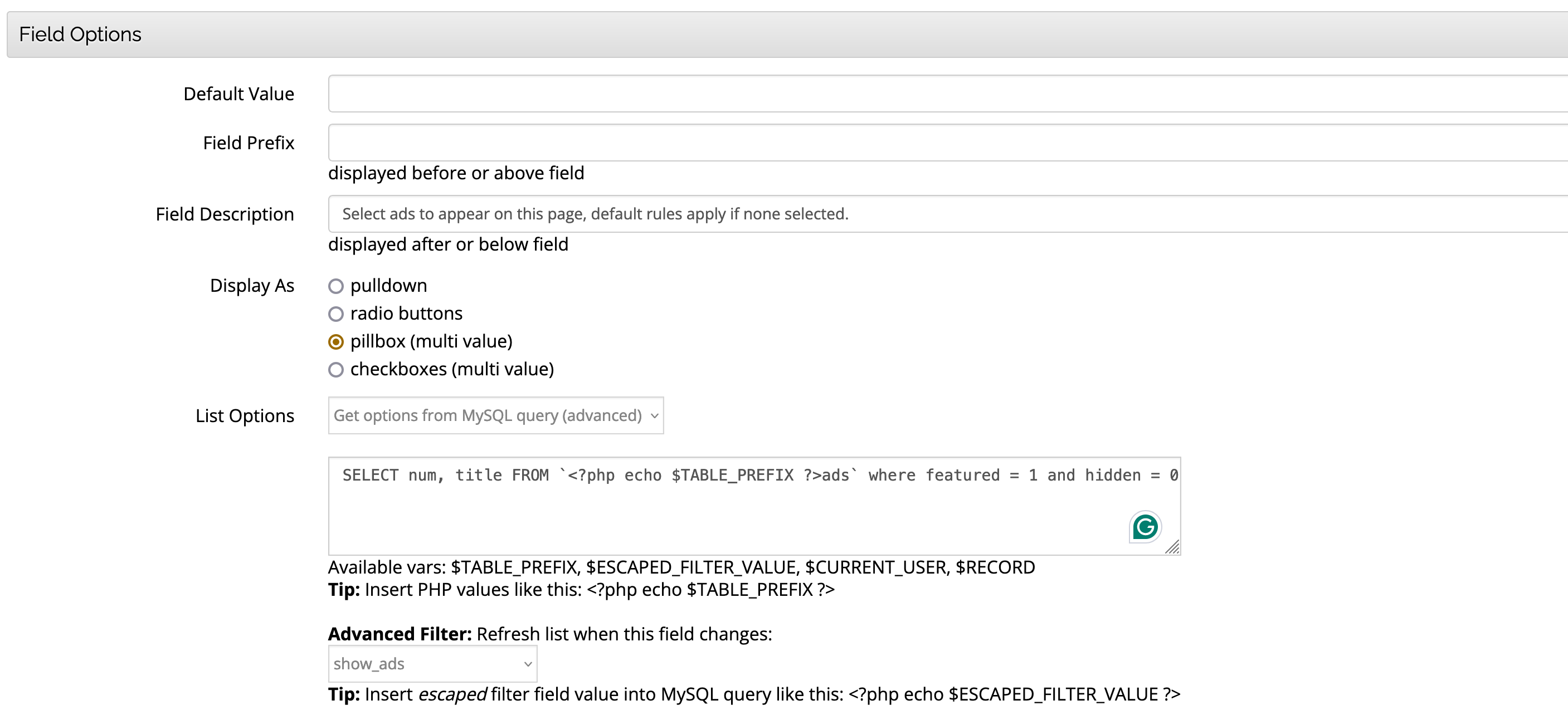 In CMSB 3.65, you can't edit the pillbox SQL statement. See attached image.