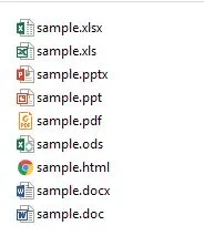 - Works with the nine most common file types: pdf, doc, html, htm, ppt, ocx, pptx, xls, xlsx, ods