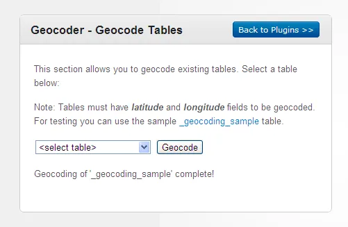- Select an existing database table to geocode all the addresses as latitude and longitude, even if you have thousands of records