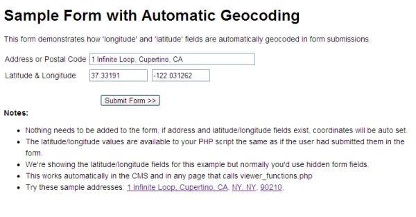 This plugin allows you to display single or multiple addresses on a Google map, automatically geocode addresses in CMS and PHP forms, and create search forms that search and sort by distance (eg: show all results within 10 miles of my postal code).