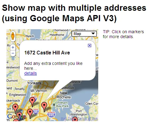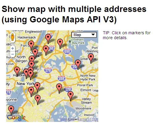 - Example code for displaying multiple addresses on a Google map with markers and popups
